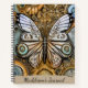 Il s'agit d'un carnet de style steampunk avec un papillon aux horloges vintages et l'intérieur des horloges dans les tons bleu clair et marron. Le texte sur la couverture avant est personnalisable et ferait un grand cadeau personnalisé.