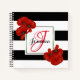 Carnet Papillons rouges sur Arrière - plan rayé noir et b