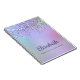 Carnet mignon avec parties scintillant irrégulière de couleur unicorne contre un arrière - plan de couleurs violet et sirène. Personnalisez avec un nom dans un script violet et ajoutez un titre ci-dessous ou laissez vide.