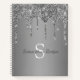 Profitez de ce design élégant avec votre nom et monogramme ou initial avec une parties scintillant gris argenté chic et brillant goutte sur un arrière - plan de feuille métallique argenté.