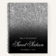 Créez votre propre livre d'or personnalisé et élégant pour son 16e anniversaire en sweet sixteen personnalisable. Arrière - plan photo moderne tendance en faux argent gris parties scintillant imprimé avec un dégradé noir superposé. Fille blanche, gris et noir foncé design pour son sweet sixteen. Vous pouvez modifier le style de police, la taille ou choisir votre couleur préférée.