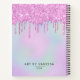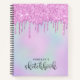 Une belle parties scintillant rose goutte d'un arrière - plan holographique rose vert et bleu et un texte de script gris décore ce carnet de croquis personnalisé de 8,5 x 11. Les mots, "Cahier de Vanessa" dans une police dessinée à la main mais personnalisée avec votre nom. Customisez le carnet d'esquisses avec le nom de votre choix pour que quelqu'un se sente spécial. Fait un cadeau amusant pour les anniversaires ou pour Noël. Vient dans une variété de couleurs. Conçu pour vous par Blackberry Boulevard.