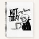 Comic bold font : Not Today, et la police manuscrite désordonnée : Energy Vampire. Sur le côté, un vampire de dessin animé tenant une tasse de café à l'air fatigué. L'art linéaire seulement, sur blanc.