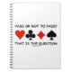 Si vous avez déjà joué au jeu du pont et vous avez réfléchi à passer, vous profiterez de ce carnet d'humour de pont avec les quatre costumes de carte avec le dicton "Passer ou ne pas passer que c'est la question". Faites à d'autres une double prise à la table de pont sur ce que vous réfléchissez la prochaine fois que c'est à votre tour de soumissionner! Avec des excuses à William Shakespeare sur ce pont commun dire!