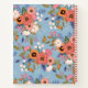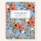 Carnet en spirale florale avec un motif de fleurs dessinées à la main dans des pastels doux contre un arrière - plan bleu clair. Ajoutez votre nom et le sujet du carnet en lettres bleu foncé sur un étiquette blanc.