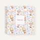 Carnet Spiral avec un motif mignon et capricieux. Ballons à air chaud et nuages mignons avec des visages parmi les étoiles, les coeurs et les ballons. Des couleurs pastel douces composent cet adorable design. Un carré blanc superposé avec votre texte à l'intérieur.