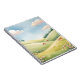 Un décor de prairie apaisant avec des collines douces, des fleurs sauvages douces en rose et jaune, et un ciel bleu pâle avec des nuages moelleux. Cette scène naturelle sereine saisit la chaleur de la lumière matinale et la tranquillité d'un chevreuil lointain broutant dans les champs. Idéal pour la découverte de la pleine conscience ou des carnets inspirés par la nature.