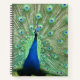 Paon. Portrait d'oiseau avec le haut du corps (bleu brillant) posé contre les plumes de queue étendues avec des "yeux" verts et bleus. La couverture arrière montre le dos de la queue élargie.