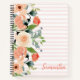 Un design branché avec des fleurs de pêche et de terre cuite sur un arrière - plan rayé. Personnalisez facilement le nom en quelques clics.