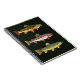 Ce design présente 3 truites : l'omble de fontaine, salvelinus fontinalis; la truite arc-en-ciel, oncorhynchus mykiss; et la truite Brown, salmo trutta. Idéal pour enregistrer les informations de pêche de la journée. Un journal unique que n'importe quel pêcheur à la mouche adorera - les ichthyologues aussi. L'art provient de trois aquarelles de M. Trout Whiskers. Lignes droites !