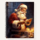 Faites vos listes et vérifiez-les deux fois avec ce carnet de Noël. Il présente le Père Noël lisant une lettre d'un enfant. Dans l'arrière - plan est un sapin de Noël et devant lui un tas de cadeaux. Vous pouvez choisir parmi plusieurs styles de pages intérieures et choisir entre une couverture rigide et une couverture souple.