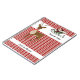Rouge, tan et blanc, bandes verticales arrière - plan avec bandes blanches et texte personnalisable. Mignonne, renne de vacances en ruban rouge. Le Père Noël vintage survole le titre sur mesure en traîneau vert. Idéal pour une liste de cartes de Noël ou un séjour de vacances. Modèles à droite pour votre commodité.