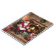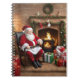 Ce cahier de Noël présente une scène réconfortante du Père Noël assis devant une cheminée crépitante, dégageant une atmosphère de confort et de joie.