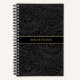 Elegant vintage black floral botanical pattern notebook with a custom name in stylish gold script typography.
