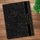 Elegant vintage black floral botanical pattern notebook with a custom name in classic serif typography.