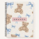 Carnet Personalized Teddy Bear & Blue Bow Pattern