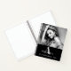 A trendy black background. Personalize and add your own photo, a name, a letter and a year. The name is written in white with a large modern style script with hand lettering with touches. The monogram letter in gray. For school, work as a sketchbook, diary and journalism. To keep the changes just remove the name from the example, leave the spaces or the emoji before and after the name
