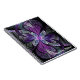 © 2014, Susan Wallace de Copyright. Le verre souillé de Faux part dans les nuances du pourpre lumineux, de l'argent, du bigorneau et du cadre violet une fleur centrale de pourpre vibrant dans ce morceau abstrait complexe.