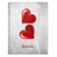 Créez un journal unique et unique avec un Carnet photo Spiral Personnalisé Red Hearts. Carnet design comprend une paire de coeurs, une vigne feuillue blanche molle contre un arrière - plan gris clair grunge avec une zone à personnaliser avec votre nom. Autres cadeaux disponibles avec ce design ainsi qu'une variété de couleurs.
