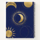 La lune de soleil d'or céleste passe à l'éclipse sur un arrière - plan bleu violet. Choisissez parmi le carnet de croquis, le journal des puces, la liste de contrôle, le papier graphique, le livre de recettes ou les lignes en différentes largeurs et couleurs. Choisissez également une couleur de colonne vertébrale pour customiser davantage votre look carnet.