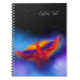 Phoenix flammé volant à travers l'espace sur un nuage de nébuleuse bleu et violet dans un ciel étoilé. Un amas d'étoiles scintillant forme la constellation de phoenix. ♡ Idyllfire