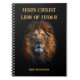 Carnet Spiral personnalisé Jésus Christ Lion de Juda en noir avec lettrage or et tête de lions impressionnants. Customisez avec votre propre nom et faites-le vous-même.