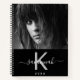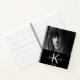 Un arrière - plan noir chic. Personnalisez et ajoutez votre propre photo, un nom, une lettre monogramme et une année. Le nom est écrit en blanc avec un grand script de style à la main moderne avec des swashes. La lettre monogramme en gris. Pour l'école, le travail, comme journal et pour la journalisation. Pour que les swashes ne suppriment que le nom de l'échantillon, laissez les espaces ou les émoticônes devant et après le nom