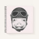Cette conception comprend un cochon mignon portant un casque vintage et des lunettes.