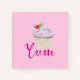Carnet Spiral avec le texte Yum! Conçu avec une illustration d'un cupcake délicieux avec des tourbillons roses et une baie avec des feuilles nichés dans le gel. Placez-vous sur un arrière - plan rose pâle.