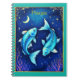 Notebook in a Pisces illustration featuring two turquoise blue fish swimming in opposite directions against a starry, deep blue background. A crescent moon and stars enhance the celestial theme, evoking the imaginative spirit of the Pisces zodiac sign.