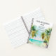 Ce carnet élégant et magnifique ferait un grand wedding planner, album photo, livre d'invité et plus encore. Le design comprend une plage aquarelle, un ciel bleu et des palmiers. Le texte combine écriture manuscrite et polices sans serif pour un look élégant et moderne. Il est parfait pour une plage d'été ou un mariage de destination tropicale.