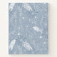 Ce joli carnet en spirale fleurie présente un motif de plumes dessinées à la main, de fleurs et de paislies en blanc sur un arrière - plan bleu poussiéreux aux accents bleu clair et foncé - personnalisez avec son monogramme - par katz_d_zynes
