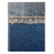Poignée droite avec fil orange sur tissu denim blanchi avec bord frange, sur arrière - plan denim bleu, place du texte, espace de copie. Cadre en tissu jean bleu Denim. Couleur Décontractée Jeans Worn