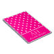 Ce carnet personnalisé dispose d'un élégant motif à pois de polka. Les pois blancs sont carrelés sur un arrière - plan rose néon. Une bannière rose vif est imprimée en bas avec un exemple de monogramme imprimé en haut, suivi d'un exemple de nom imprimé dans une police de script élégante. Vous pouvez personnaliser le carnet pour y inclure votre nom et vos initiales personnalisés.