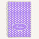 Carnet graphique moderne en pois poli graphique à motif pointé violet. Personnalisez avec votre propre nom et votre initiale. Voici l'exemple : Rachel D. Conçu par Sarah Trett pour www.mylittleeden.com