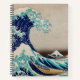 Carnet Spiral avec images avant et arrière du chef-d'oeuvre de l'artiste japonais Hokusai, "La Grande Vague au large de Kanagawa", où l'énorme vague bleue est sur le point de frapper les bateaux marrons au milieu d'une tempête