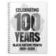 Stylish souvenir BLACK HISTORY MONTH CENTENNIAL Notebook, celebrating its centenary from Negro History Week to Black History Month. Newspaper-look design shows large 100 YEARS with founder Dr Carter G Woodson inside. Bold typography reads CELEBRATING and BLACK HISTORY MONTH 1926–2026. In the background is a feint gray power fist outline. Ideal souvenir Notebook to use while you celebrate 100 years of Black Excellence in Black History Month. Matching gifts and apparel available.