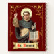 Saint Dominique de Guzman (1170-1221) était un prêtre espagnol castillan qui fonda l'Ordre mendiant des prédicateurs (Dominicains). + Bras relevé de son doigt pointant vers le ciel, Saint Dominique est représenté ici prêchant. Il est tonifié et habillé de l'habitude de son ordre, une robe crème ceinte et un scapulaire crème sous un manteau à capuchon noir. Un chapelet est suspendu à sa ceinture. Avec sa main gauche, il tient un spray de lys de pureté et un livre ouvert. Les pages du livre portent les mots "Aut pro Deo; Aut de Deo", c'est-à-dire "Soit pour Dieu, soit pour Dieu". Selon le témoignage du Frère Paul de Venise, prêtre de l'Ordre des Prédicateurs, à l'audience de canonisation de Saint Dominique à Bologne en août 1233, le fondateur parlait toujours à Dieu ou à son sujet. Ces pratiques que Saint Dominique recommanda à ses frères étaient si proches et si chères à son coeur. Ils ont également été adoptés dans l'article 31 des Constitutions Primitives de l'Ordre des Prédicateurs. + Fête : 8 août + Crédit photo (BEN 002) : Figure de Saint-Dominique extraite d’une ancienne empreinte dévotionnelle suisse publiée à l’origine dans la chromolithographie par Benziger, Einsiedeln, Suisse, fin 19e siècle, de la collection privée de l’architecte d’éphémère religieux.