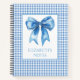 Ce mignon carnet en spirale est doté d'un arrière - plan en vichy bleu et blanc avec un arc bleu assorti. Personnalisez avec votre choix de nom ou de texte spécial.