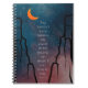 Carnet Psaume 23 avec une vallée profonde, ciel étoilé et lune de croissant.