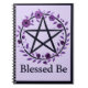 This whimsical notebook features a lovely purple and black floral pentacle with the text Blessed Be printed underneath in bold font. Finished in a mixed media art print.