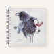 Des corbeaux d'étable tenant des baies dans leurs becs sur un arrière - plan abstrait de l'aquarelle. Le dos du bloc-notes comporte un autre corbeau et un autre arrière - plan abstrait.