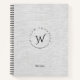 Un beau design monographique utilisant votre nom et initiale en forme de cercle classe. Une texture en faux lin gris dans l'arrière - plan aux accents noirs crée un style unique. Customisez le monogramme et le texte et faites-le votre propre livre de recettes. Fournitures de bureau et de papeterie d'école idéales. Autres couleurs de lin offertes dans ce design.
