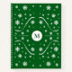 Un Carnet de recettes avec motif Flower Power blanc, une lettre monogramme vert foncé et des ornements floraux dans les tons vert émeraude pour vos préparations maison! Changez le papier intérieur pour un carnet d'école ou de bureau !