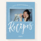 Cahier de recettes photo, parfait pour les douches de mariée. Dans un charmant design bleu poudre et blanc, les recettes sont écrites en écriture manuscrite sous une photo de votre choix. Un cœur ponctue le i. Votre photo s'intègre dans un cadre de lignes blanches dessinées. Ajoutez le nom et l'année en lettres modernes.