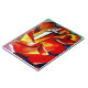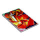 avec design original de peinture aquarelle de Sacha Grossel Art de rose rouge fleur en gros plan, macro style. Ce sujet botanique a des motifs intenses et colorés de tons pétales rouges, jaunes et bleus contre un arrière - plan vert. Cet art floral, abstrait dans l'intensité colorée, apporte des sentiments d'amour et de romance et est pour les amateurs de fleurs et de couleurs partout.