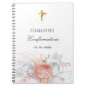 Un arrière - plan blanc chic avec des fleurs roses d'or et de blanc, un feuillage argenté et une croix dorée. Personnalisez et ajoutez un nom et une date.