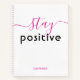 Ce design moderne présente le texte "rester positif" dans la typographie moderne violet et noir avec votre nom personnalisé ci-dessous. Personnalisez en modifiant le texte dans la zone de texte fournie. #positif #moderne #typographie #élégant #chic #staypositif #carnets #giftideas #stationnaire #onlineshop #carnets #personalizedcadeaux #motivationnel #motivation #encourager #personalizednotebooks #journal #stationery #personaldon #giftsforher #moderne #stylish #élégant #feminine #girly #tendance #tendance #potytyy graphie #maison #bureau #travail #école