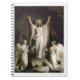 Jésus avec les bras tendus alors qu'il sort du tombeau. Les anges avec les mains accrochées au culte. Oeuvre de Carl Bloch