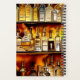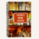 Un carnet amusant pour suivre toutes vos recettes de cocktails favorites, avec une représentation artistique de bouteilles d'alcool et de spiritueux disposées sur les étagères du bar arrière d'un établissement. Aquarelle numérique créée à l'aide d'un logiciel de génération d'IA. Cadre de texte central personnalisable